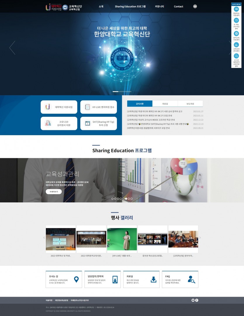 한양대 교육혁신단 교육혁신팀 페이지 정보 작성자 최고관리자 댓글 0건 조회 89회 작성일 23-01-28 10:07 본문 한양대 교육혁신단 교육혁신팀 관련링크 http://inno.hanyang.ac.kr/ 28회 연결 목록 이전글모전산업 23.01.28 다음글위즈마인소프트 23.01.28 댓글목록 댓글목록 등록된 댓글이 없습니다.